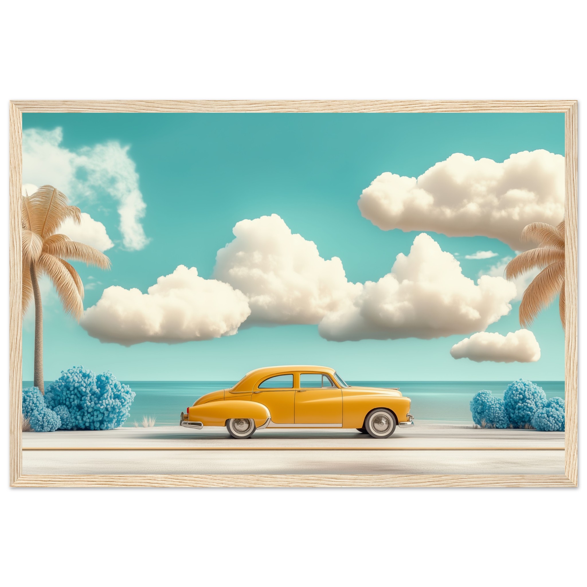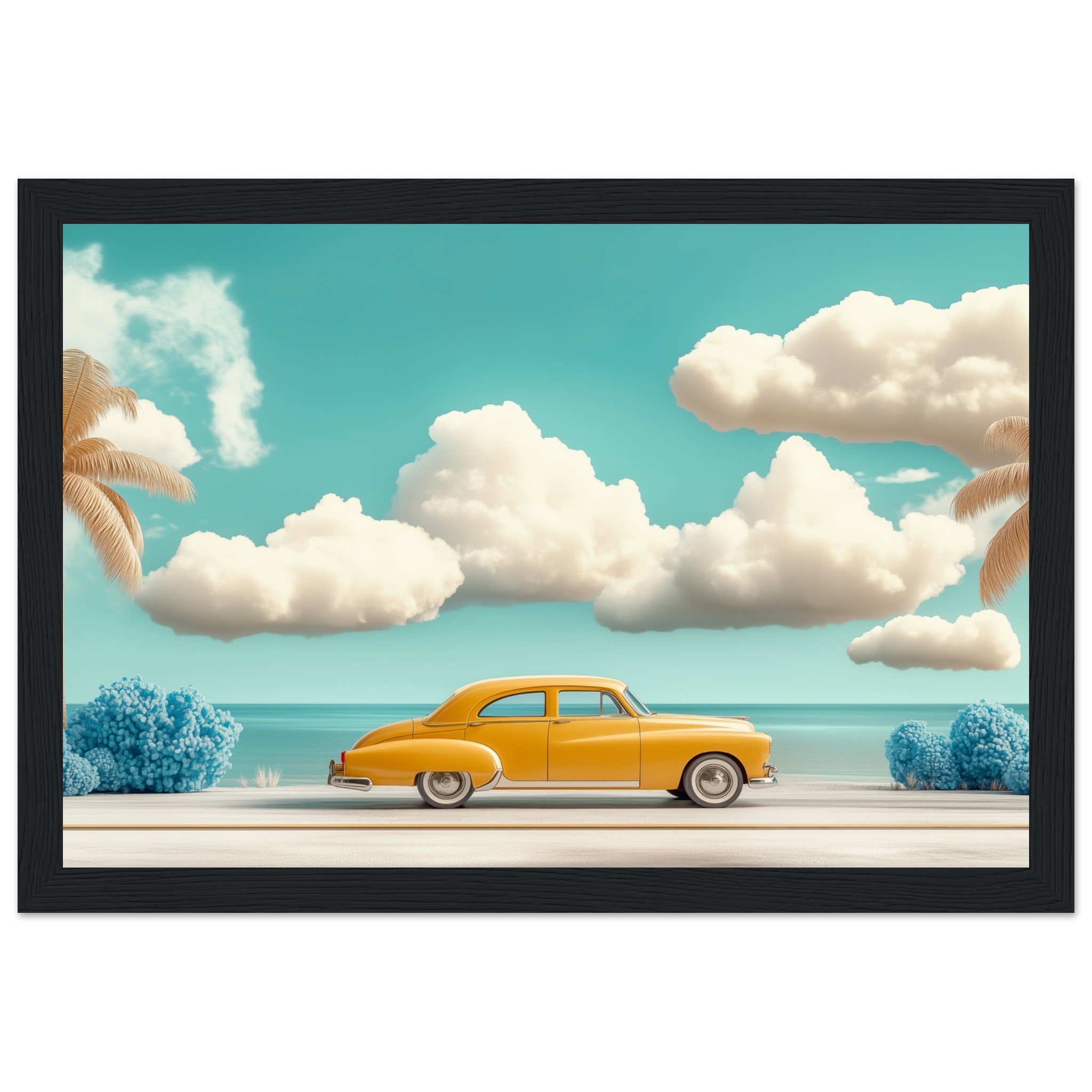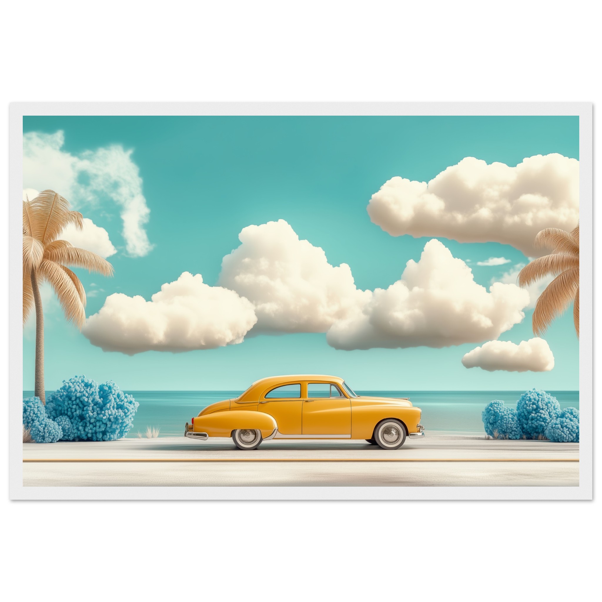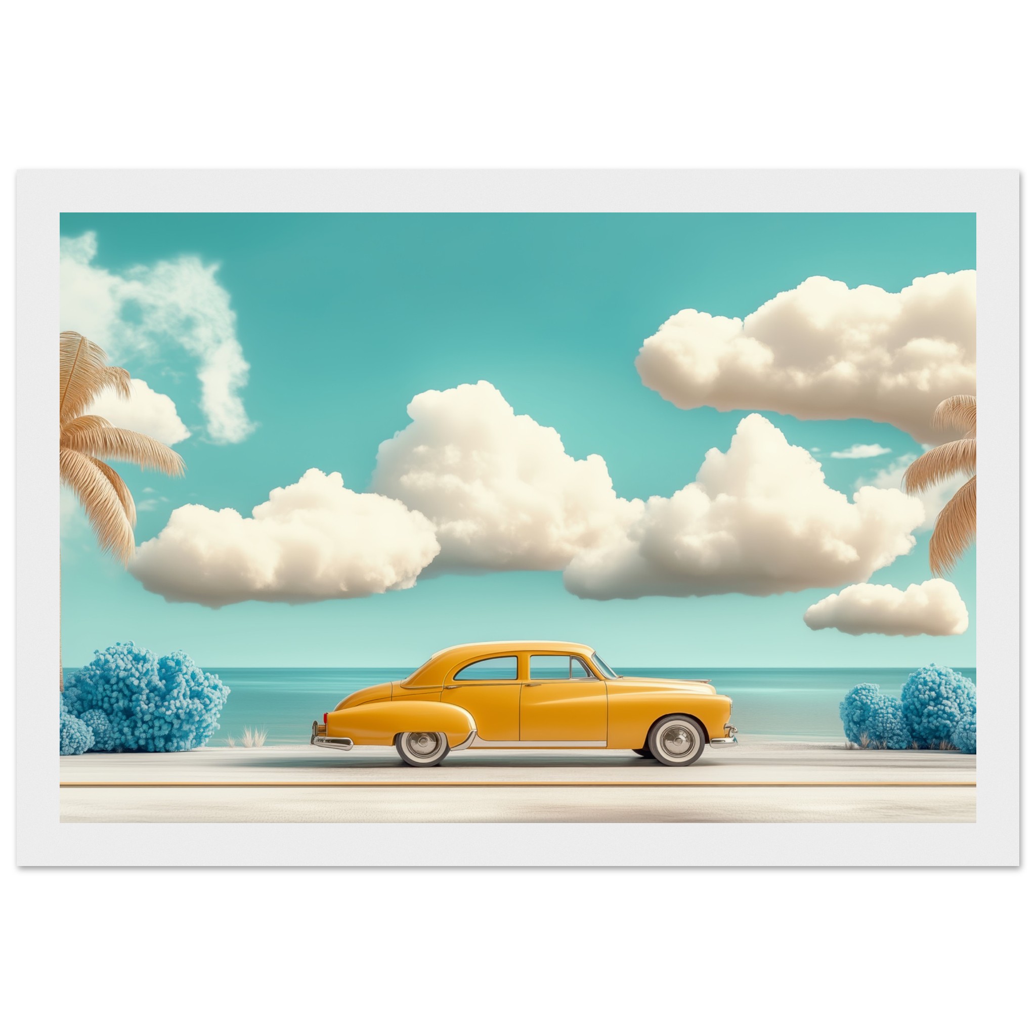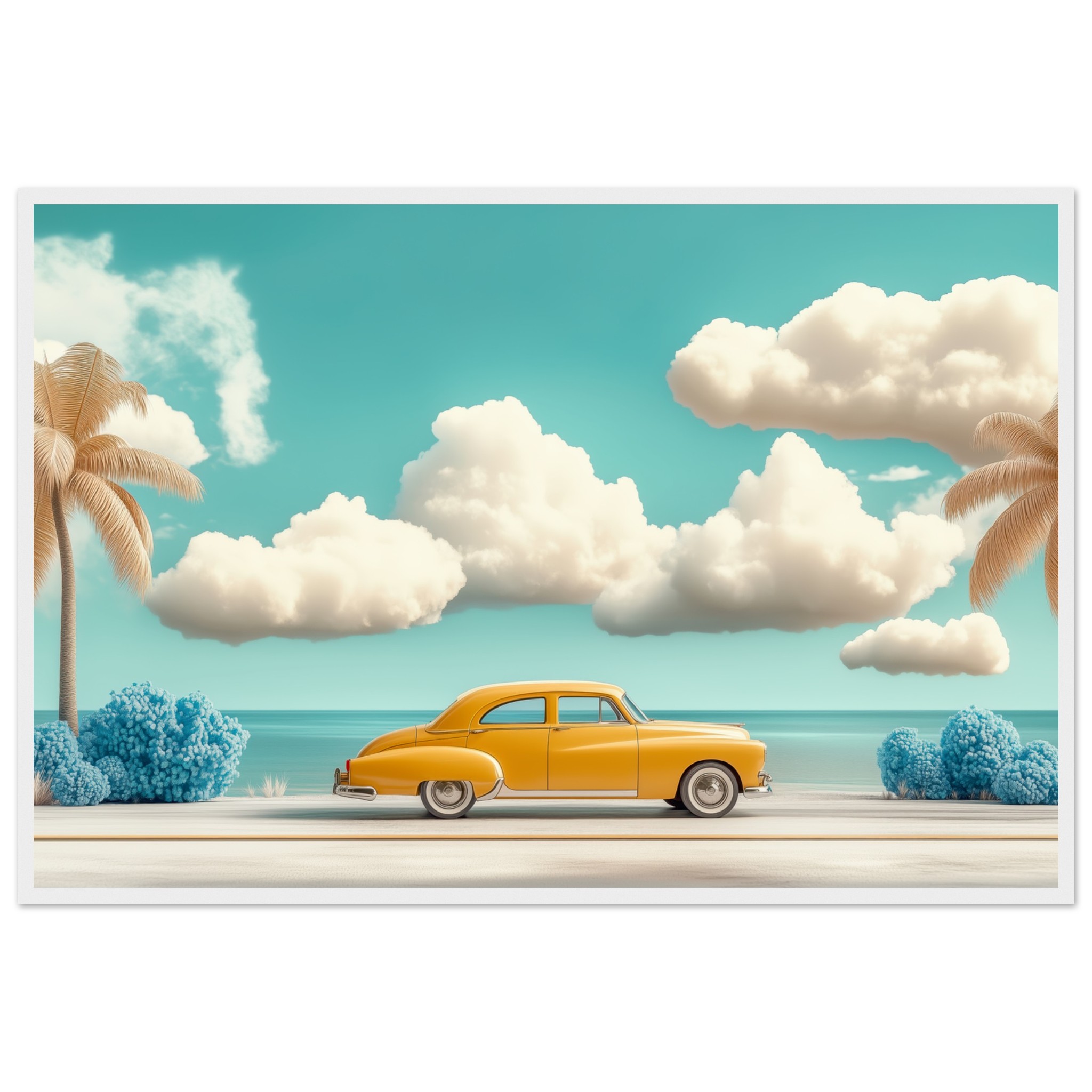 El horizonte se abre, el viento susurra historias y la carretera invita a perderse en lo desconocido. Un viaje sin destino, solo el placer de avanzar, de sentir la brisa cálida y el murmullo del océano. Una obra que captura la esencia de la libertad, de los sueños que ruedan sobre el asfalto y las emociones que solo un road trip puede despertar.