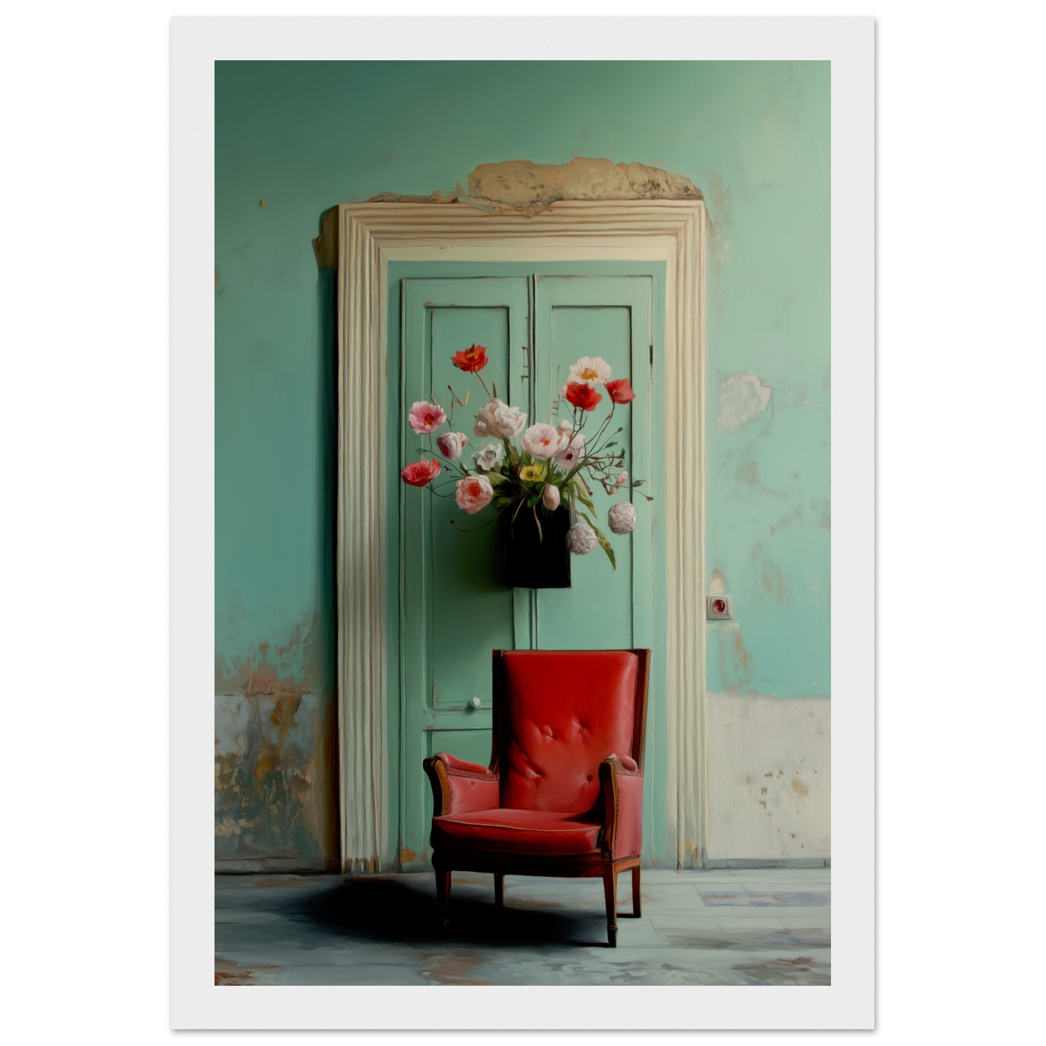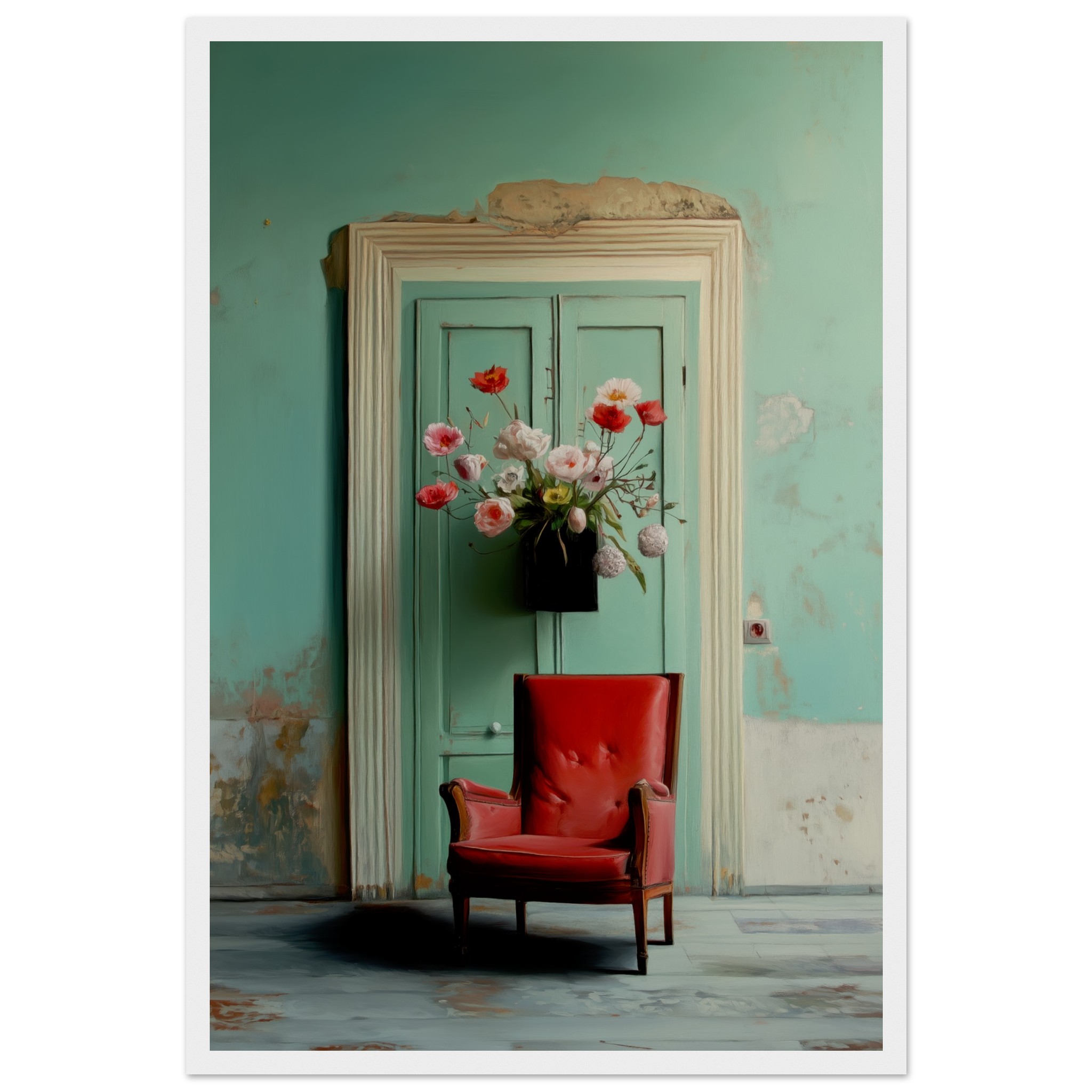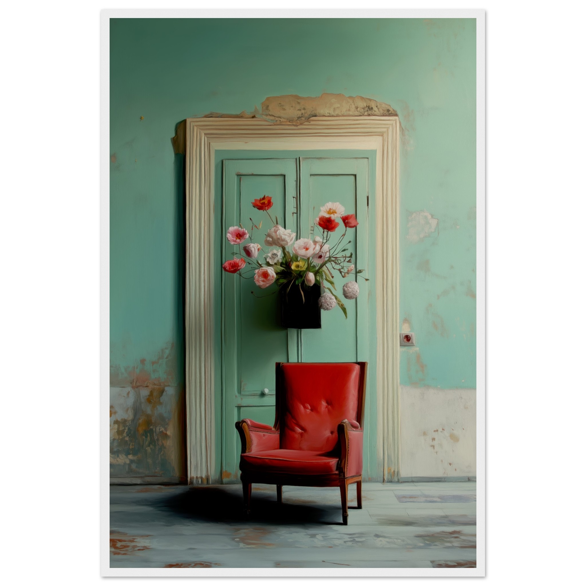 Llevó flores y se sentó en el sillón rojo, con la esperanza intacta, como tantas veces antes. Pero el tiempo pasó y la espera se convirtió en parte del lugar. Nadie llegó. Y un día, quien esperaba también partió. Solo quedó el eco de lo que pudo haber sido.