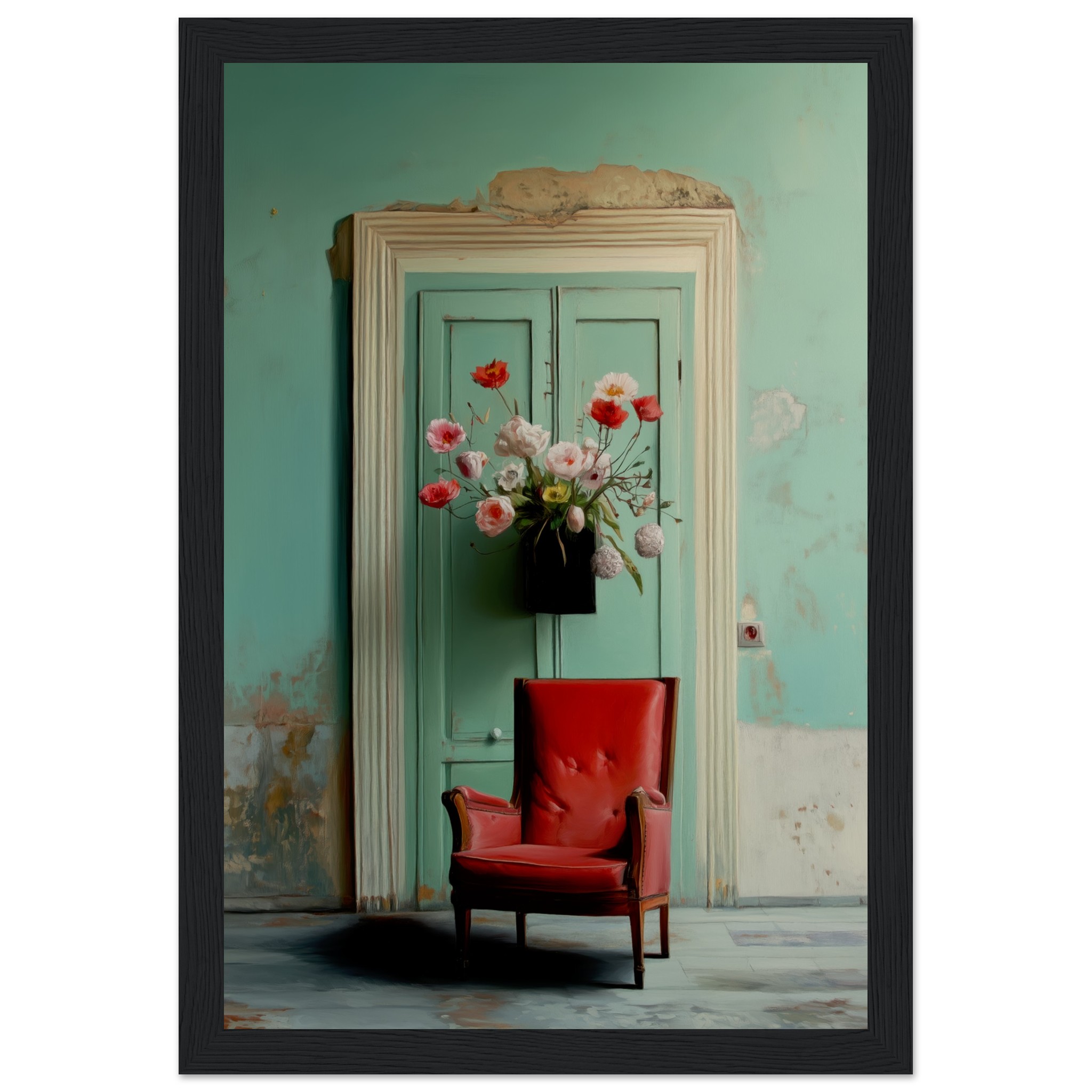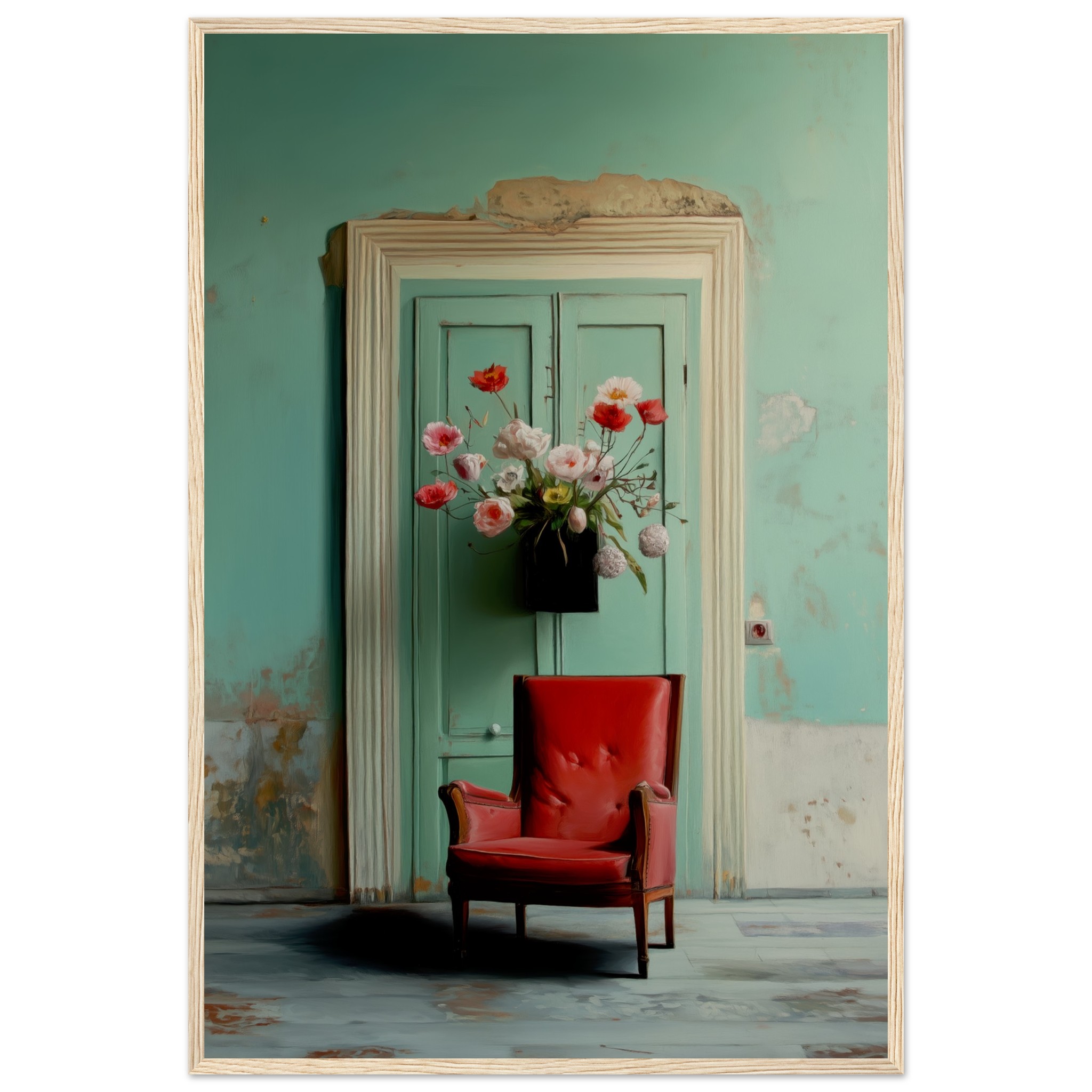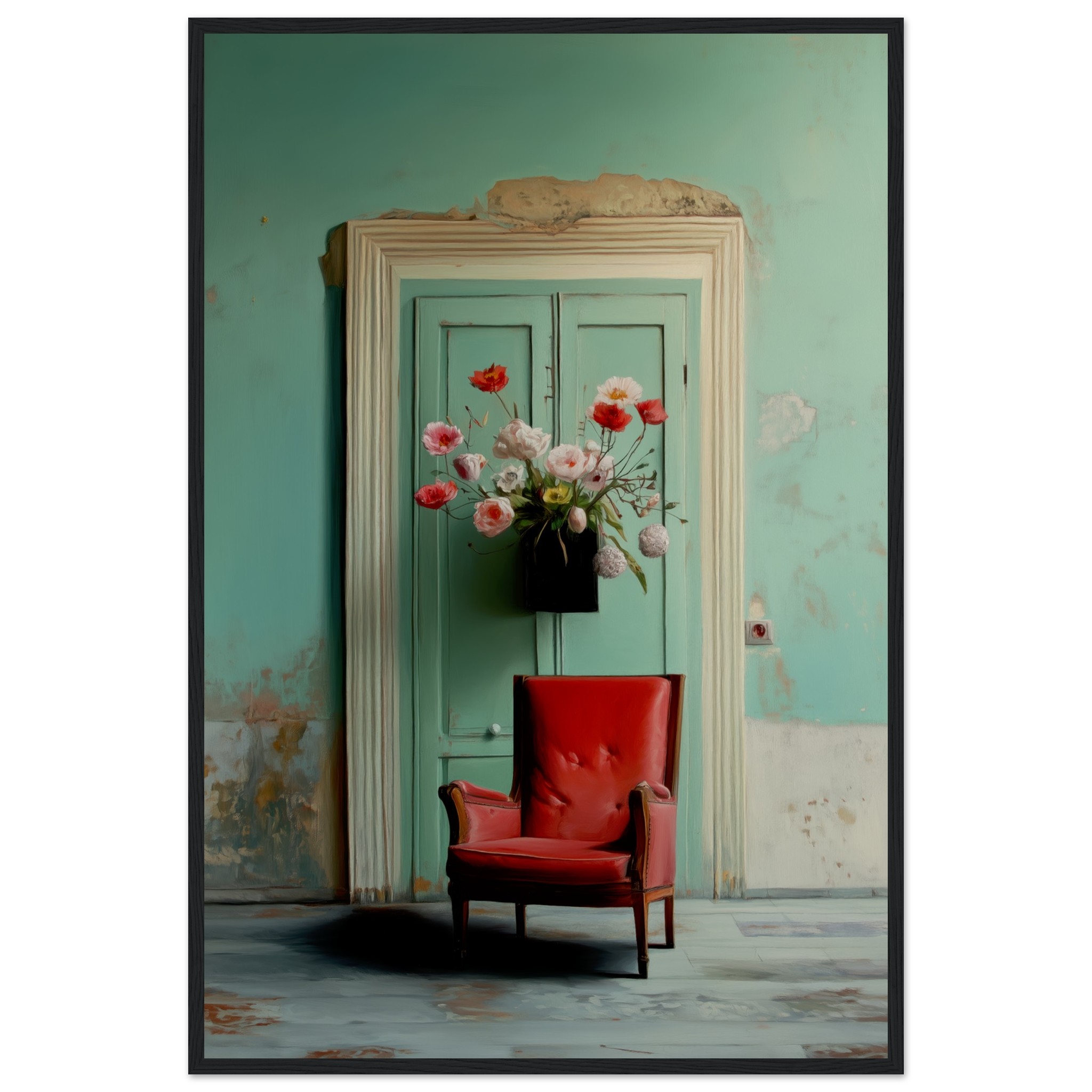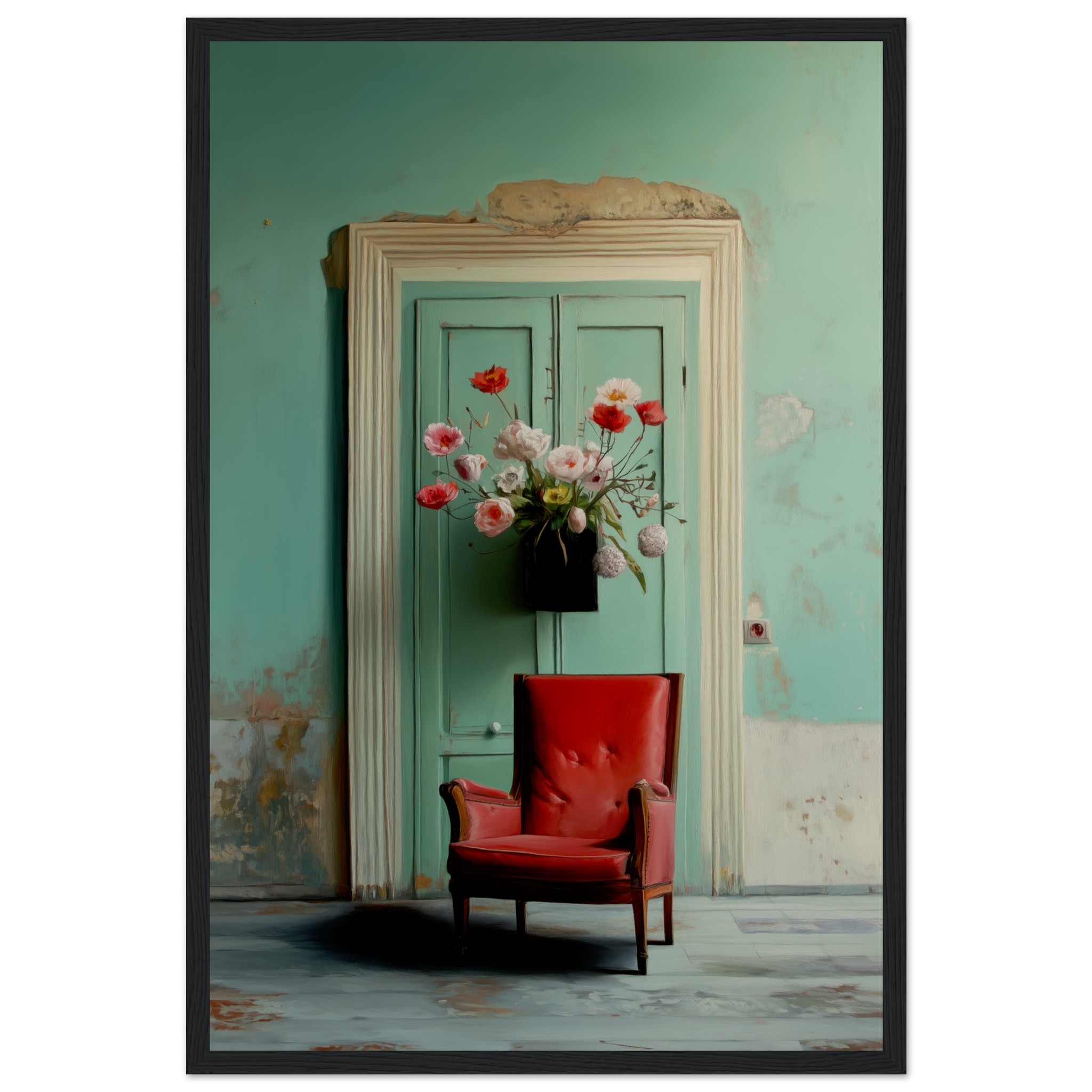 Llevó flores y se sentó en el sillón rojo, con la esperanza intacta, como tantas veces antes. Pero el tiempo pasó y la espera se convirtió en parte del lugar. Nadie llegó. Y un día, quien esperaba también partió. Solo quedó el eco de lo que pudo haber sido.